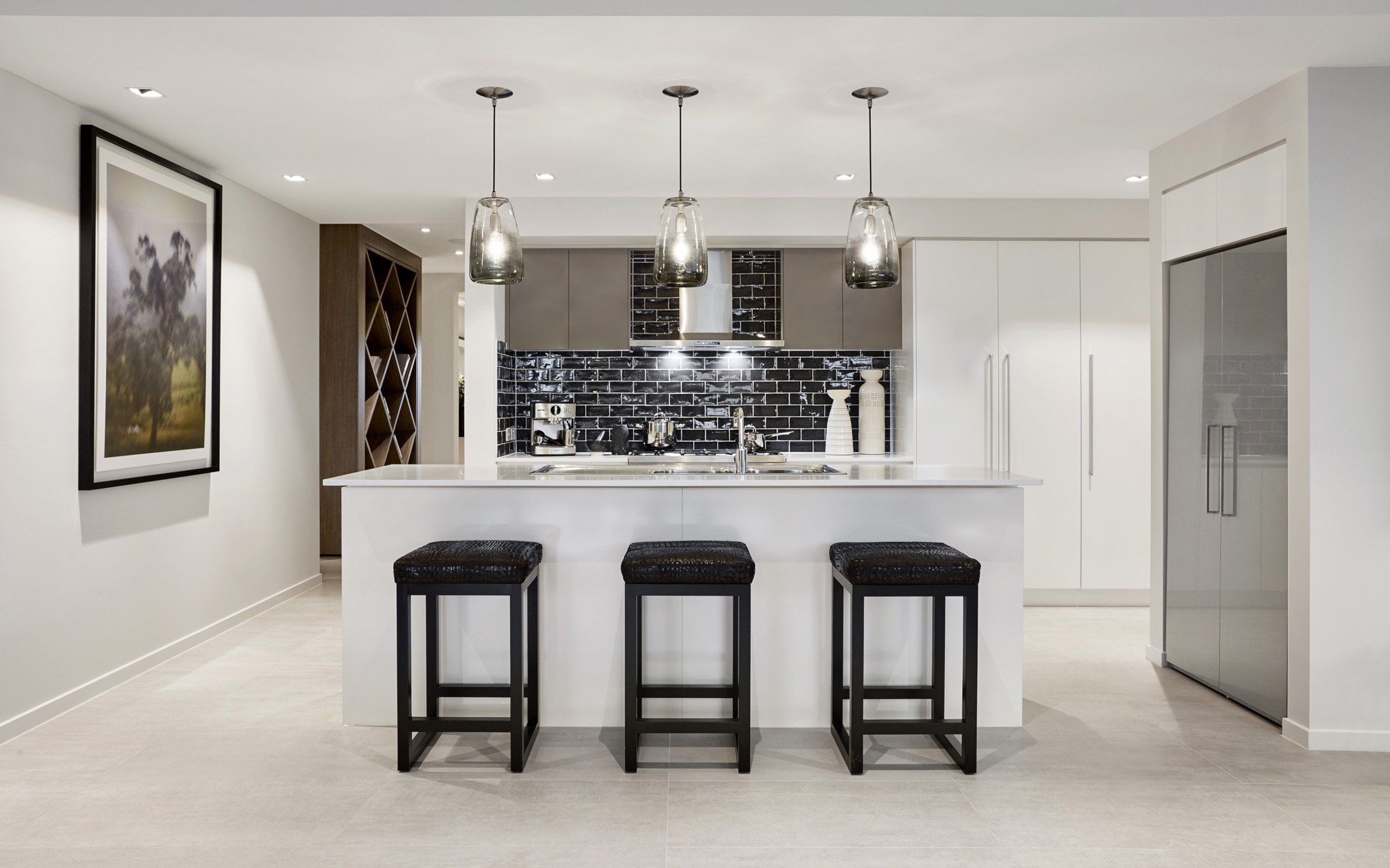 Most modern house designs feature open-plan areas where the living, kitchen and dining zones are combined. If this is the case with your home, the best way to define the living area is with a rug and my advice is the larger, the better. Try to have at least the front feet of all your furniture on the rug, rather than sitting around the edges of it. Check out the Ellwood display home at Box Hill for inspiration.