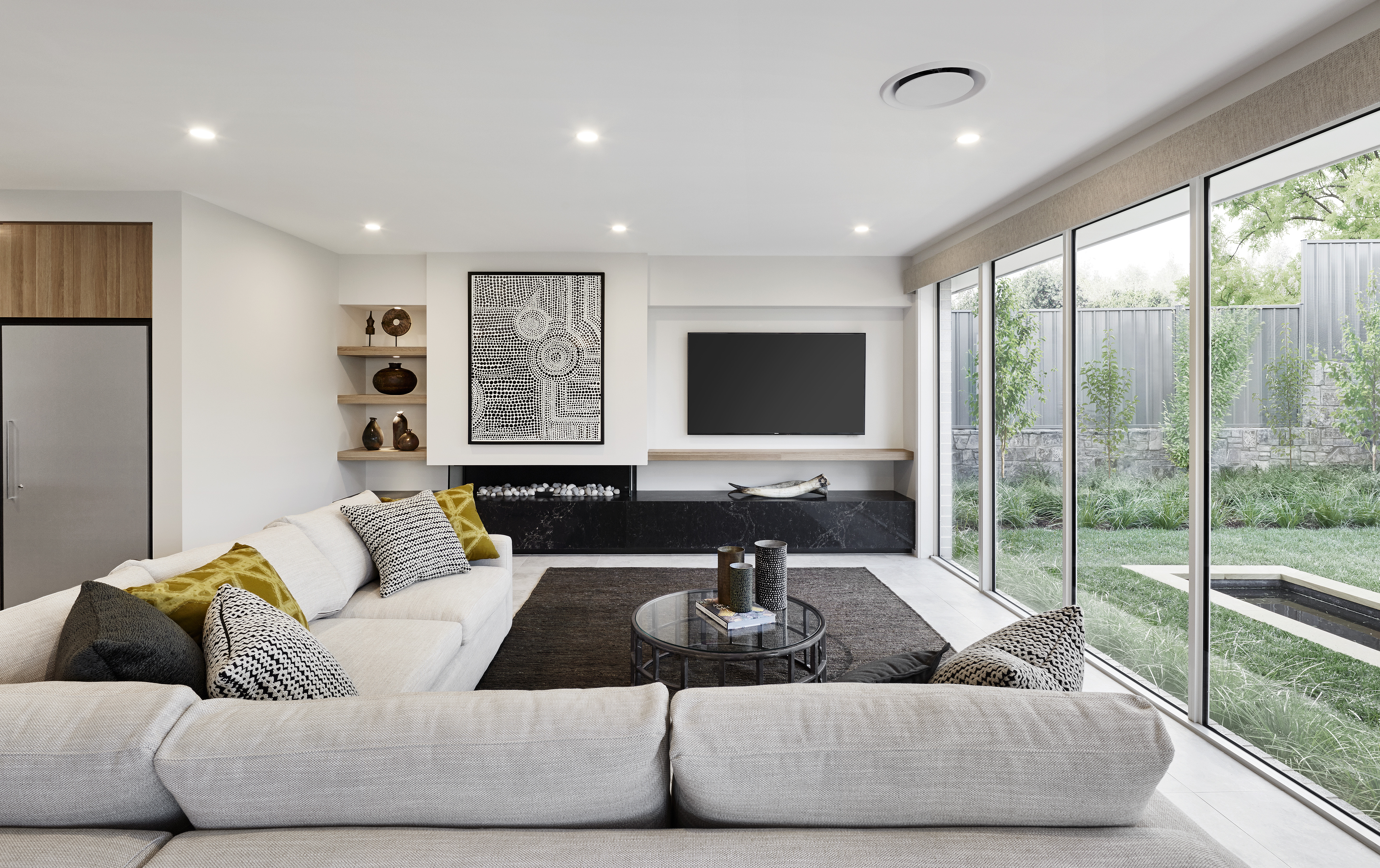 Popular in coastal and suburban homes, a skillion roof is a single flat roof pitched at a dramatic angle. Its clean, modernist lines make a striking statement, and the slanting nature is well suited to skylights and solar panels. Alandra is a stunning example.